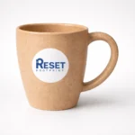 Sustainable rice husk mug (350-450 ml) with single-color logo print, food-safe and BPA-free.