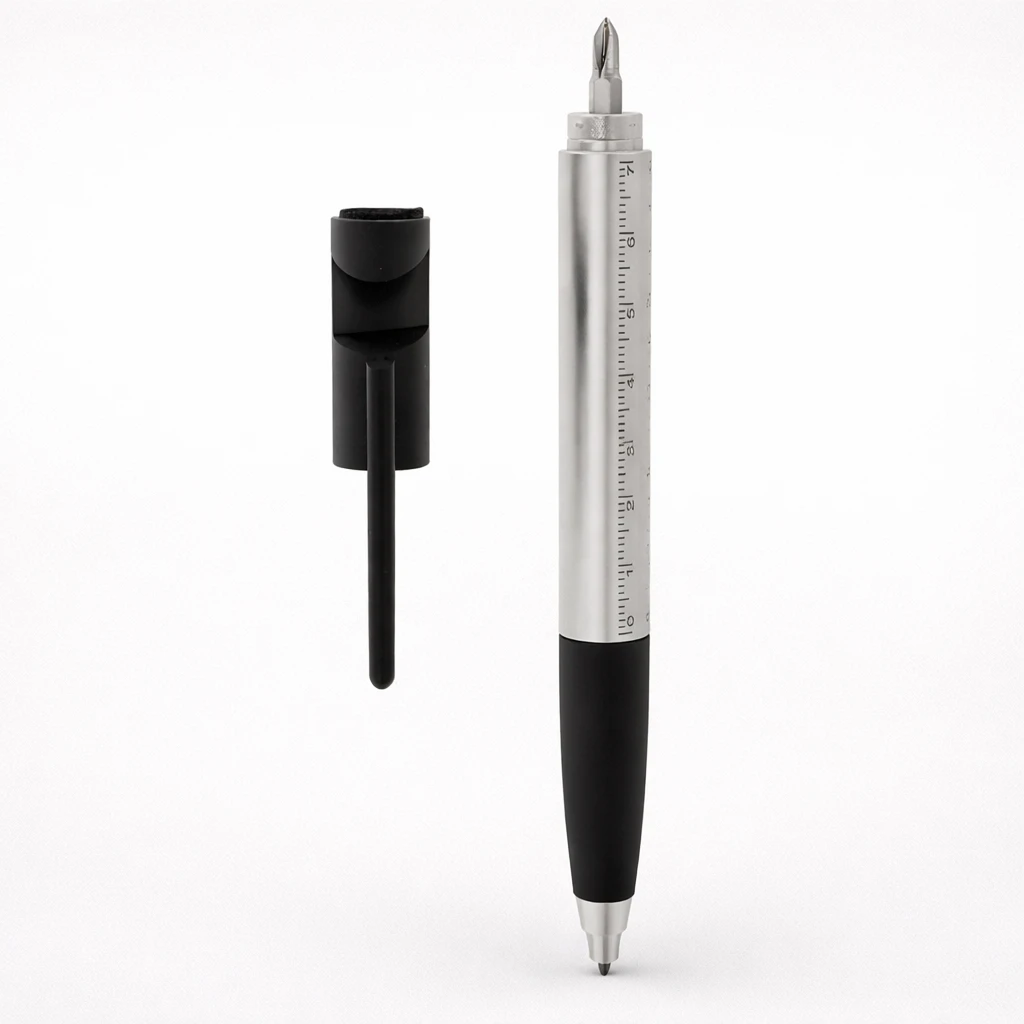 A compact all‑in‑one gadget pen that lets you write, measure, swipe, fix, and prop up your phone in seconds.